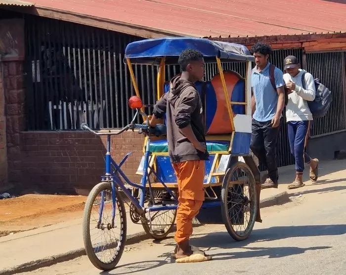 Väl framme i Madagaskars tredje största stad, Antsirabe, kommer du att äta lunch innan du åker på rickshaw-tur. Det lokala namnet på en dragen rickshaw är “pousse pousse”.