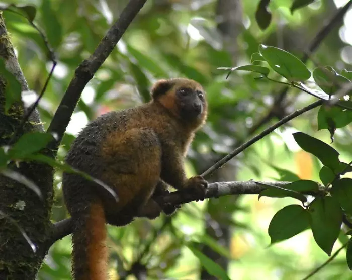 Morgonen ägnas åt en guidad vandring i parken. Som i Andasibe finns det både en “spårare” och en guide, och här går spåraren i förväg för att leta efter lemurerna. Den gyllene bambulemuren är huvudattraktionen här. Det är sällsynt och är en av världens mest hotade lemurarter. Det upptäcktes först 1986, vilket är ganska otroligt när man tänker på att den är drygt en halv meter hög! Upptäckten ledde direkt till att Ranomafana blev en nationalpark – det blev helt enkelt uppenbart att något måste göras om den gyllene bambulemuren skulle kunna räddas. Du måste vara en ganska van vandrare för att följa med på morgonens vandring. Den är inte ansträngande i sig, men vägarna kan vara ganska leriga, och ibland måste du tränga dig genom den täta undervegetationen för att komma till träden där lemurerna sitter. Å andra sidan är belöningen enorm när du ser det lilla pälsdjuret sitta och mumsa på sin bambupinne.