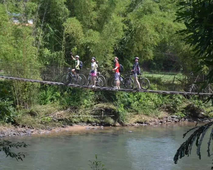 Från centrala Kiulu cyklar du genom den lugna byn som kantas av charmiga stugor, där små vägstånd lockar förbipasserande med sina läckra lokala produkter. Längs vägen korsar du flera hängbroar, där du kan utmana din balans och njuta av den spektakulära utsikten över det omgivande landskapet.
