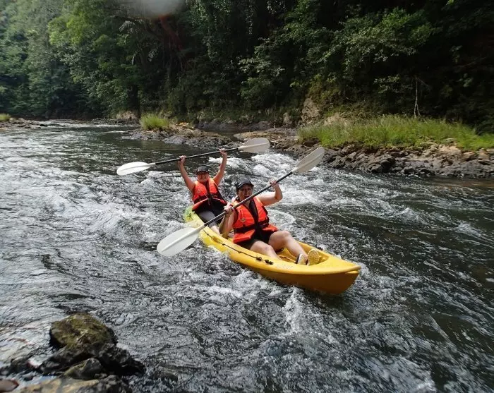 Efter frukost möter du din guide i hotellobbyn och körs mot de norra förgreningarna på Sarawakfloden. Här gör du dig redo att hoppa i din kajak med Sarawaks hisnande natur som bakgrund. Väl i vattnet avgör du själv takten när du paddlar förbi dramatiska kalkstensformationer och den frodiga regnskogen längs stranden. Atmosfären genomsyras av lugn och magi.