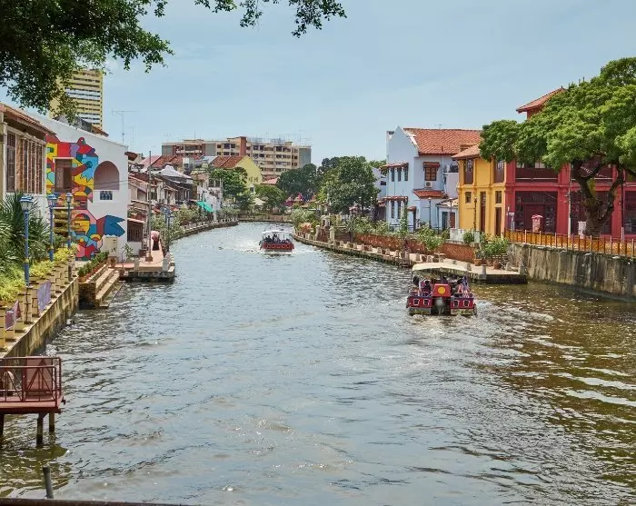 Med smaklökarna nöjda fortsätter turen. Du går ombord på en mindre täckt båt som tar dig på en 40-minuters båttur längs Melakaflodens historiska rutter. Floden har verkligen varit centrum för stadens historia, då den sedan 1400-talet varit en viktig handelsknutpunkt för hela Sydostasien. Idag ger floden ett nytt perspektiv på Melakas charmiga stadsbild, ett perspektiv som skiljer sig från det du just upplevt på land. Luta dig tillbaka och njut av synen av kullerstensbelagda gator, gamla broar och färgglada köpmannahus medan du stilla glider fram.