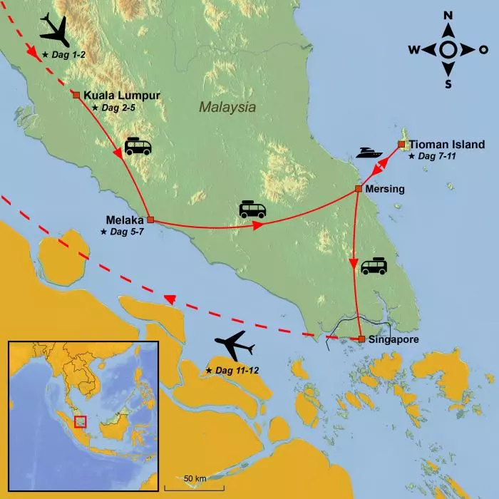 På denna resa kan du uppleva Malaysias pulserande huvudstad, Kuala Lumpur, och fördjupa dig i Melakas spännande historia innan du styr kosan mot snorkelparadiset Tioman Island, där det lugna ö-livet väntar dig.