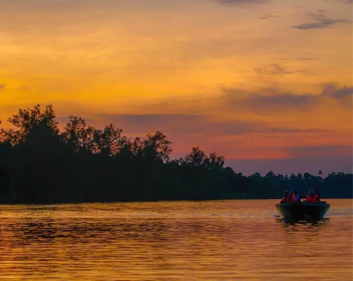 Senare på eftermiddagen blir du återigen inbjuden till en båttur innan dagen övergår till natt. Medan båten sakta åker fram berättar din guide om regnskogen och hjälper dig att upptäcka dess flora och fauna som omger dig från alla håll. Du kan återigen ha turen att uppleva regnskogens unika djurliv när saltvattenkrokodilen visar sig i vattnet eller silverlanguren svingar sig från gren till gren i trädtopparna.
