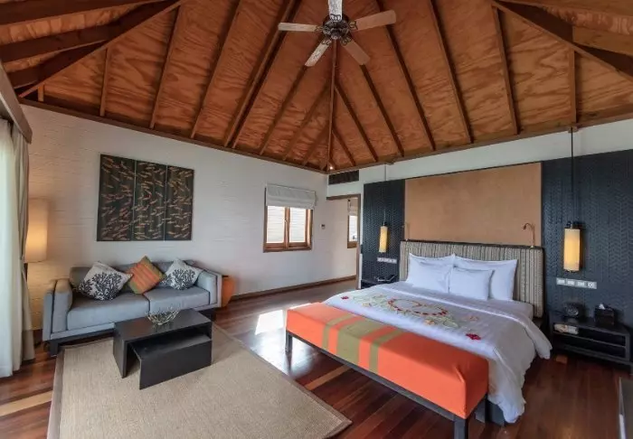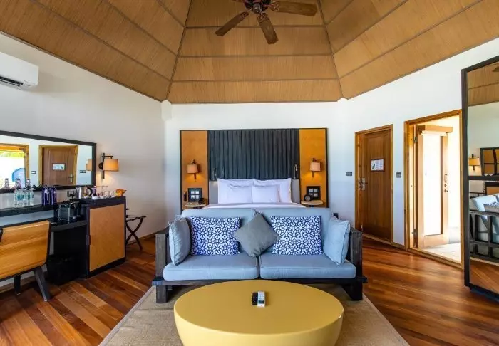 Meeru har totalt 284 villor och erbjuder ett brett utbud av rumskategorier med allt från eleganta strandvillor till lyxvillor som är byggda på pålar ute i havet. De är alla rymliga, välmöblerade och erbjuder vacker utsikt över det sagolika havet. Varje villa är utrustad med wifi, luftkonditionering, takfläkt, minibar och kassaskåp. Strandvillorna erbjuder badrum med regndusch som delvis är utomhus, medan villorna på pålar har vanliga badrum. På morgonen kan du njuta av en kopp te eller kaffe på din terrass medan du blickar ut över det turkosa havet och kikar på öns hägrar, som kommer på besök varje morgon.