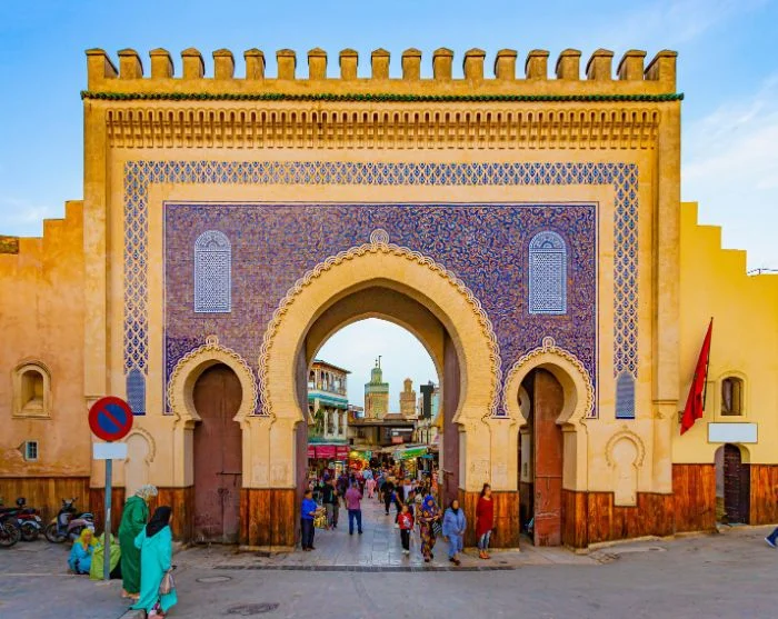 En annan höjdpunkt i Fes är det kungliga palatset strax utanför medinan. Även om man inte kan komma in slås varje besökare av de ståtliga gyllene portarna, omgivna av blågröna mosaiker. De sju portarna symboliserar de sju himlarna inom islam och vittnar om både den historiska och den nutida betydelsen av kungamakten. Precis bakom palatset ligger den gamla judiska stadsdelen Mellah, där arkitekturen berättar historien om Fes’ kulturella mångfald och fredliga samexistens genom tiderna.