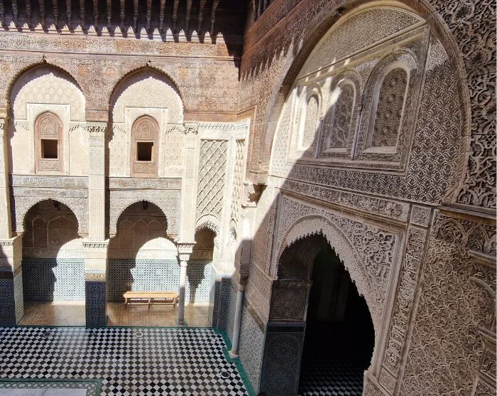 Staden, som grundades år 789, har genom århundraden vuxit fram till ett levande historiskt centrum med över 9 000 smala gränder och passager. Här hittar du allt från matthantverkstäder och smedjor till de ikoniska garverierna, där färgglada kar och doften av läder avslöjar hantverkets stolta traditioner. Den täta bebyggelsen, de livliga marknadsplatserna och de historiska madrasorna och moskéerna gör medinan till ett fascinerande virrvarr av liv där historia, kultur och vardag fortfarande existerar sida vid sida.