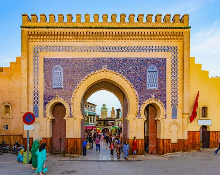 Går du utanför medinan bör du unna dig ett besök vid kungapalatset, där du får möjlighet att se de imponerande gyllene portarna — några av de mest fotograferade platserna i Fes.