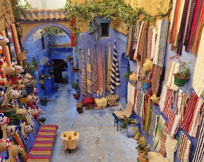 Stämningen i Chefchaouen är avslappnad och det är lätt att spendera flera timmar med att lugnt promenera runt i de vackra, blå gränderna. Du kan nästan planera din dag efter solen. Börja till exempel dagen med en kopp kaffe på en takterrass och se solen gå upp över Rifbergen. När solen börjar gå ner kan du åter ta dig upp i höjderna för att se de sista solstrålarna över de blå gatorna och stadens takåsar. Många promenerar mot Den Spanska Moskén, som ligger på kullen precis utanför medinan.