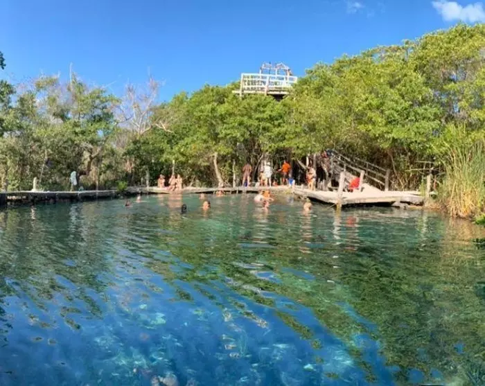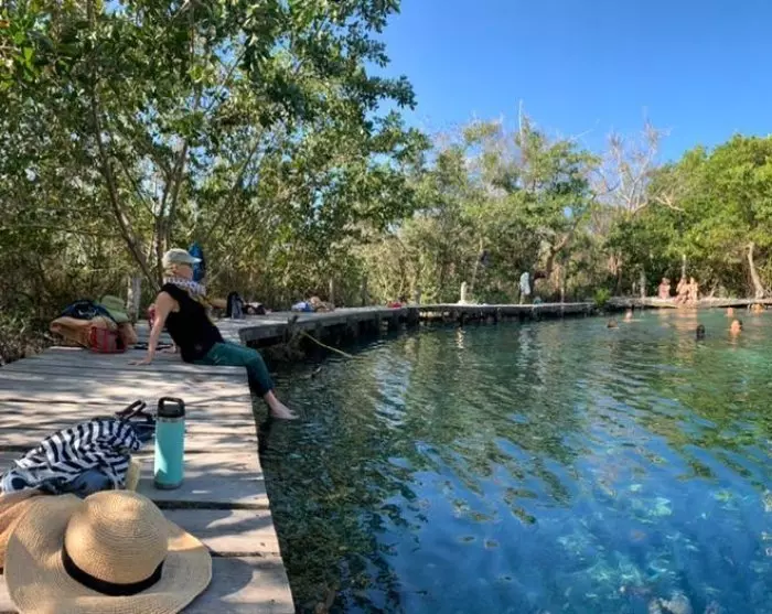 Det kommer också att finnas tid att ta ett uppfriskande dopp i det kristallklara vattnet i cenoten Ojo de Agua, som sägs ha helande egenskaper.
