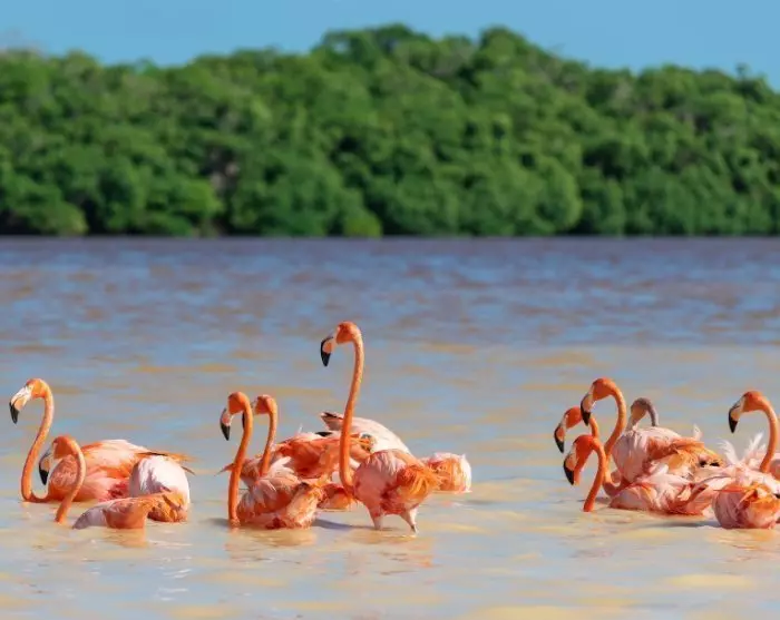 Vid ankomst till Celestun följer du med ut på en upplevelserik båttur i nationalparken, som är känd för sina mangroveträd och sitt imponerande fågelbestånd. Stora delar av året kan du se flockar med fascinerande rosa flamingor, som tillsammans med en massa andra exotiska fåglar har sitt hem här. Djurlivet i Celestun är generellt rikt så det gäller att hålla ögonen öppna – kanske har du också turen att få se en krokodil längs vägen. Båtturen varar i ungefär 1,5 timmar, då guiden delar sin kunskap om området.