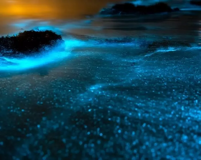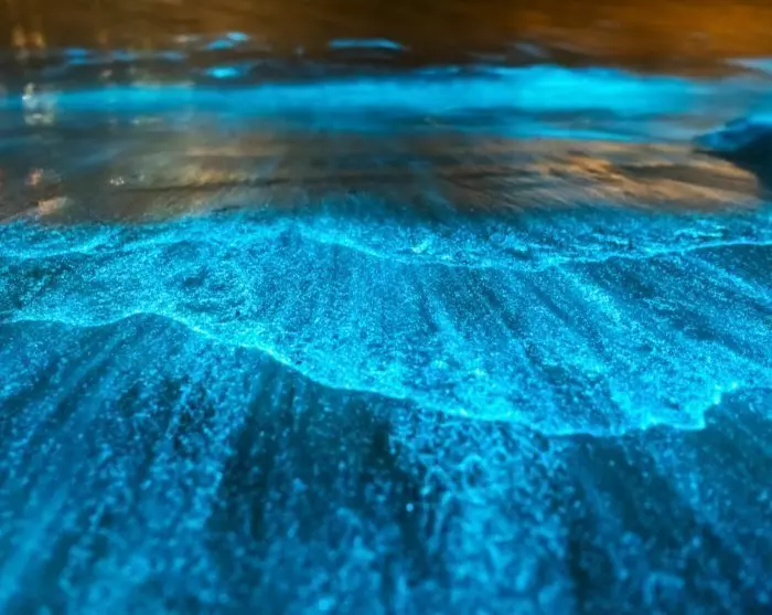Bioluminescens är ett speciellt naturfenomen som bara finns på några få platser i världen. Det är en naturlig process där levande organismer i vattnet producerar och avger ljus på grund av kemiska reaktioner som uppstår inuti organismen. Ljuset som avges är vanligtvis blått, vilket skapar en surrealistisk glöd i vågorna. Detta fenomen kan bara upplevas på natten och är som mest imponerande runt nymånen, när ljusstörningarna är som minst.