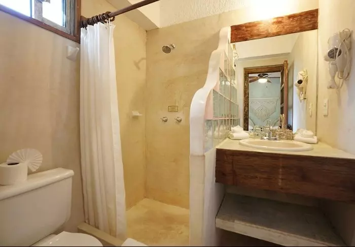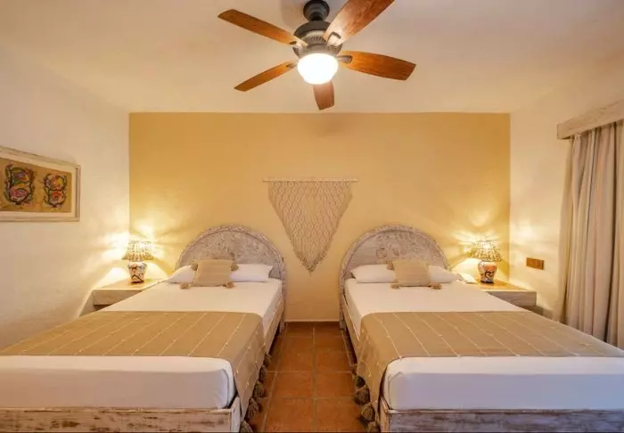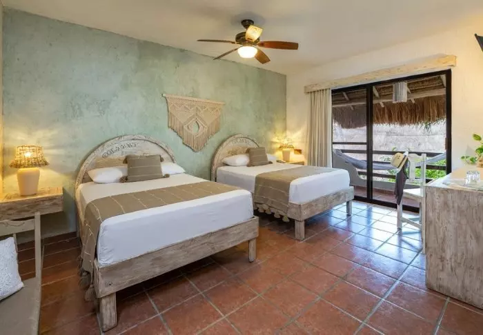 Hotellets 33 rum är ljust inredda i rustik mexikansk stil med trämöbler och dekorativa detaljer, som ger det en avslappnad och hemtrevlig känsla.