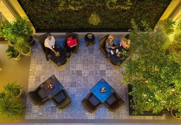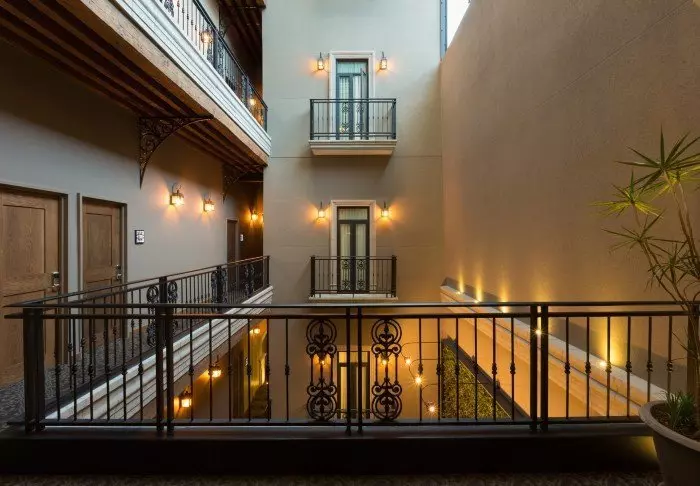 Den gamla kolonialtidsbyggnaden har renoverats och fått en elegant och modern stil, som fortfarande präglas av byggnadens historia med det mysiga atriumet i mitten av byggnaden bevarat.