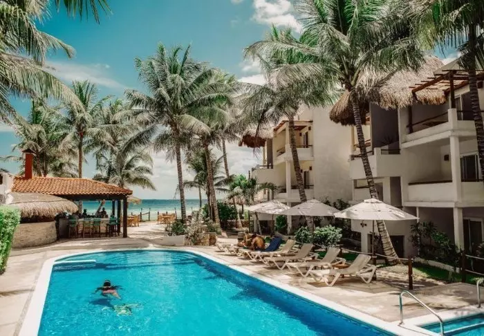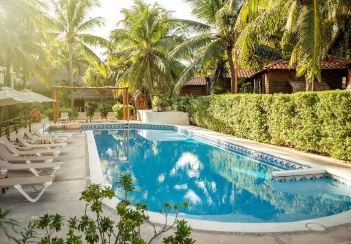 Cirka 15 minuters bilväg norr om Playa del Carmen ligger det charmiga Petit Lafitte Beach Front Hotel and Bungalows på första parkett till Karibiska havet. Denna plats utstrålar avkoppling och passar dig som vill ha ett lite mer avsides och lugnt avslut på din semester. Hängmattor i vajande palmträd och ljudet av vågorna från det azurblå havet skapar en härlig semesterkänsla.