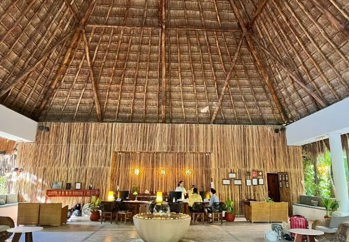 Både hotellets reception och restaurang är byggda under en hög, halmtäckt palapa, som är en traditionell mexikansk byggnadsstil där naturmaterial som trä, bambu och torkade palmblad används. Förutom att vara mycket vacker, ger de öppna sidorna och det luftiga taket god ventilation, vilket gör dem idealiska i varma och fuktiga klimat.