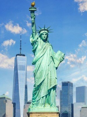 Den 93 meter höga statyn skänktes till USA av Frankrike 1886 som en gåva för att fira nationens självständighet. Frihetsgudinnan har sedan dess välkomnat immigranter till New Yorks hamn och är en av världens mest ikoniska landmärken.