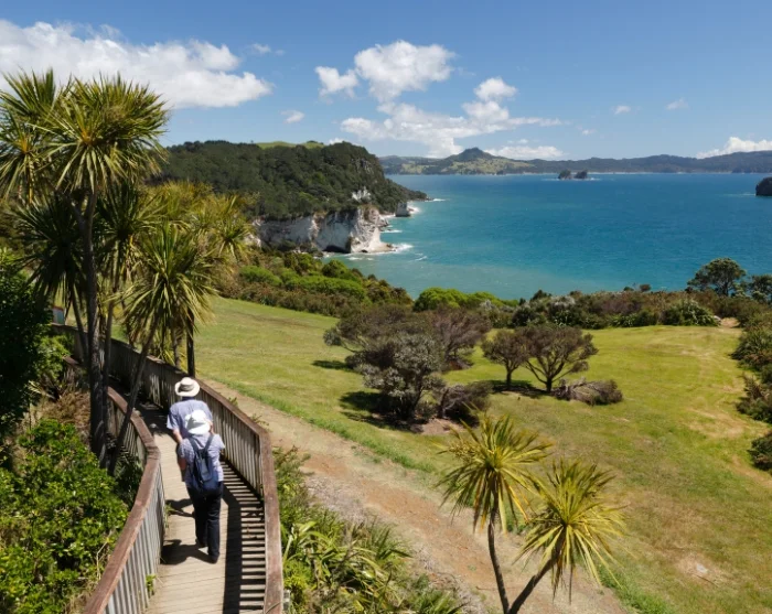 Se fram emot att uppleva Coromandel-halvöns höjdpunkter med vidsträckta skogar, förtrollande sandstränder och den ikoniska, naturskapade klippbågen Cathedral Cove (Te Whanganui-A-Hei). Det finns många natursköna stopp längs vägen med korta promenader och gott om fotomöjligheter, där du kan njuta av regionens imponerande landskap.