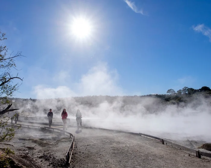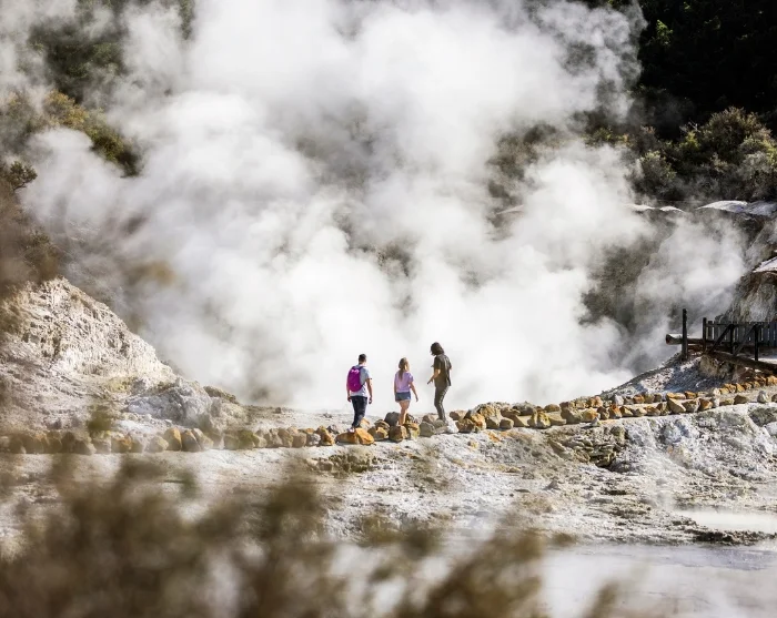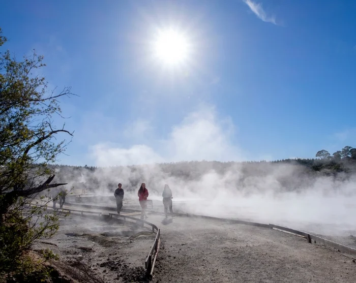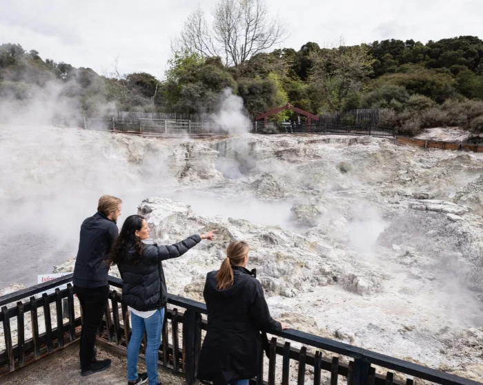 Vid ankomst börjar du din självguidade promenad genom parken, vilket tar ungefär 1–1,5 timmar. Du möts av ett landskap med ångande svavelkällor, bubblande lerpölar och kokheta vattenfall – inramat av svavellukt, dimma och kristalliserade mineralavlagringar. Stigen är tydligt markerad och lätt att gå, och längs vägen finns informationsskyltar och utsiktsplatser som berättar om områdets unika geologi och maoriernas betydelse.