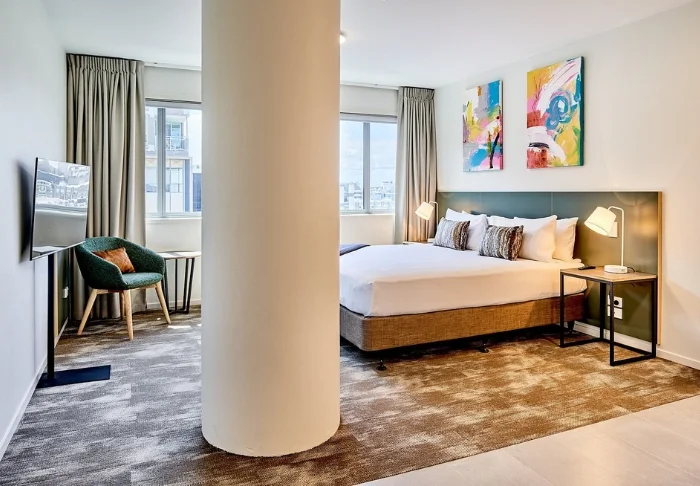 Lägenhetshotellet ligger i en befintlig byggnad, vilket innebär att inga rum är helt lika. Totalt finns 75 moderna rum i olika storlekar – från kompakta studios till rymliga lägenheter med plats för familjer och grupper. Rummen är smakfullt inredda och utrustade med ett pentry med bland annat espressomaskin, kokplattor, mikrovågsugn och köksutrustning, så att du har möjlighet att själv tillaga dina måltider. Rummen har dessutom eget badrum, värdeskåp, gratis wifi, Smart TV, aircondition och dubbla fönster som garanterar en god natts sömn – även mitt i staden.