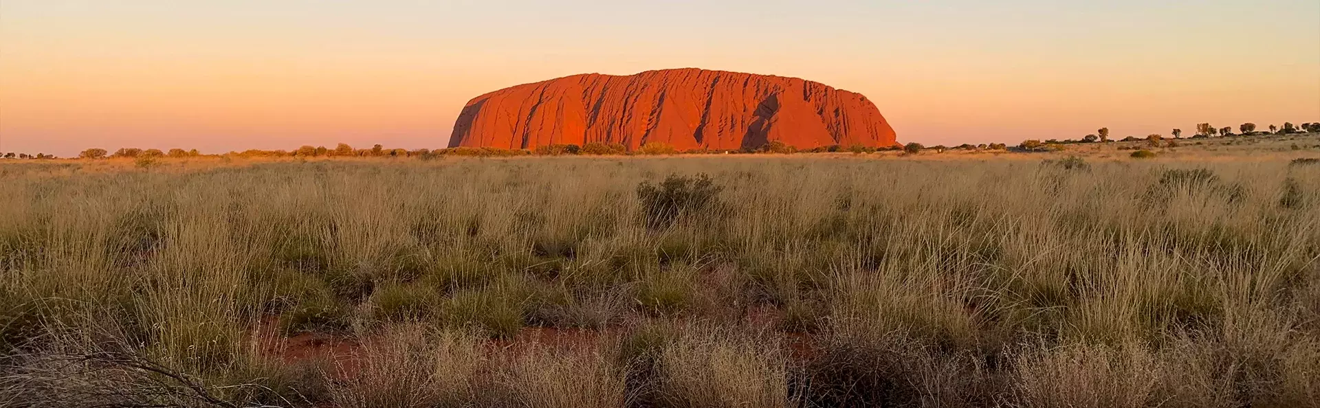 Senare under dagen väntar en solnedgångstur vid Uluru. Det är en magisk upplevelse att se hur den väldiga klippan långsamt skiftar färg från roströd till glödande orange innan den till sist framträder som en grå siluett i det avtagande ljuset.