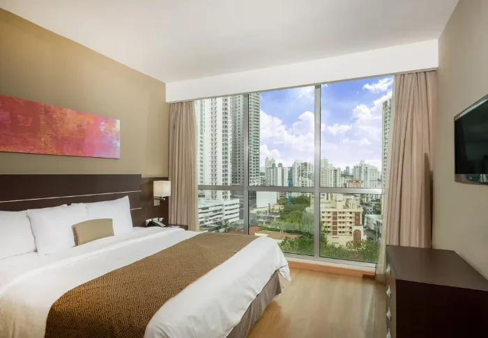 På hotellet finns flera restauranger och barer där du kan beställa både spännande lokala och internationella rätter. På kvällen bjuder takterrassens bar på en vacker solnedgång över Panama City – som bäst avnjuten med en sval drink i handen.