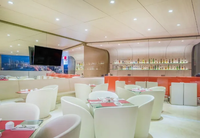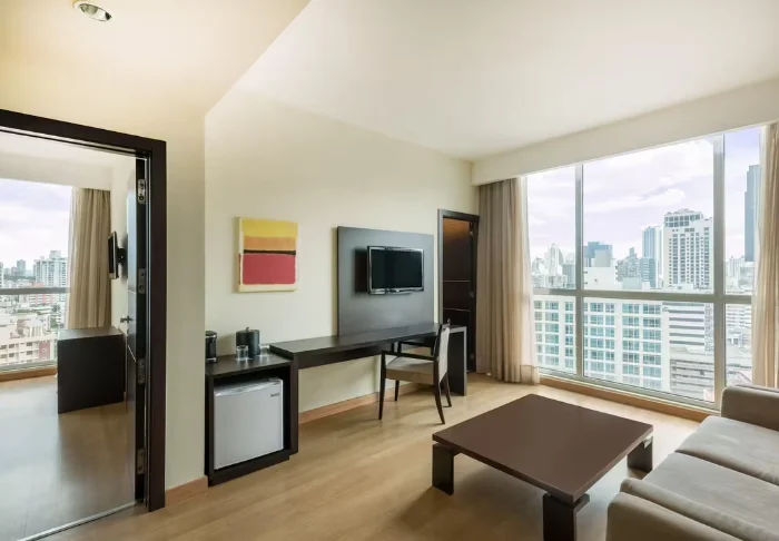 Hotellet har 92 ljusa och moderna rum, inredda i en enkel och minimalistisk stil. Alla rum har aircondition, wifi, TV, minibar samt te- och kaffefaciliteter. Genom rummens stora fönsterpartier kan du blicka ut över stadens pulserande liv från ovan.