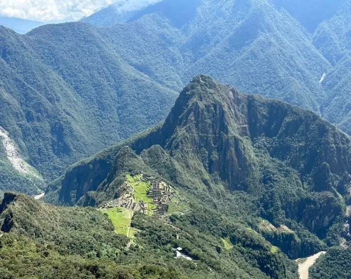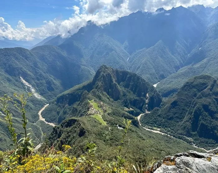 Berget Machu Picchu är 3082 meter högt och från toppen av berget får man en imponerande utsikt ner över både inkaruinerna Machu Picchu och de majestätiska omgivande Anderna.