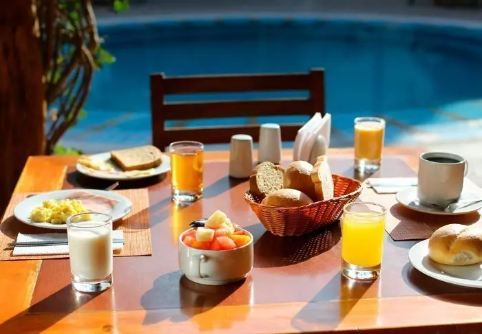 Hotellet har en egen restaurang, där den inkluderade frukostbuffén serveras. Restaurangen serverar också lunch och middag.