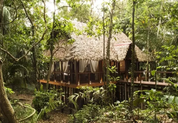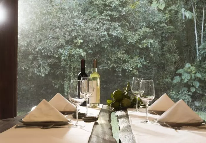 På första våningen finns ett loungeområde, där du kan sjunka ner i en soffa med en bra bok eller dela dagens upplevelser med andra resande. Du kan också sitta häruppe och njuta av en läcker cocktail medan solen går ner och djungelns nattaktiva djur och insekter vaknar upp. Du lär bli överraskad över hur mycket ”naturliga oljud” djur och insekter faktiskt gör härute.