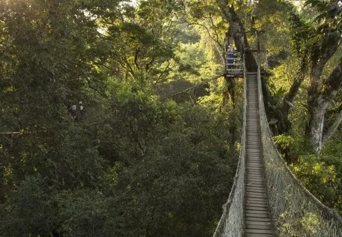 Dag 2: Paddla kanot på Sandovalsjön i Tampopata-reservatet på utkik efter djungelns exotiska djur och fåglar. På eftermiddagen: promenad bland trädtopparna på lodgens egen ”canopy walk”. Guidad promenad i regnskogen efter mörkrets inbrott.