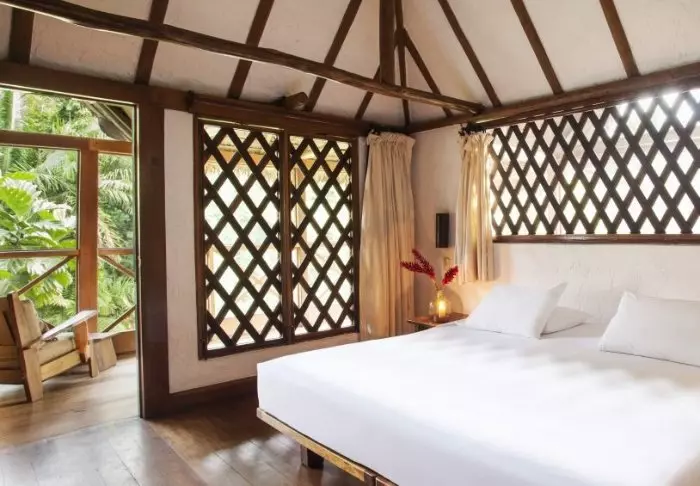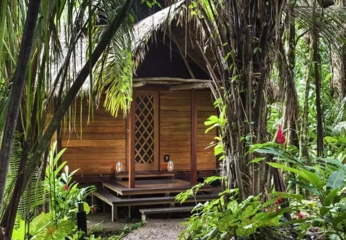 Här finns 25 vackert inredda bungalower – alla byggda i trä och på pålar så att de inte blir översvämmade när det kommer kraftiga tropiska regnoväder. Bungalowerna har sköna sängar med myggnät, takfläkt och privat badrum med varmt vatten, morgonrock och toalettartiklar.