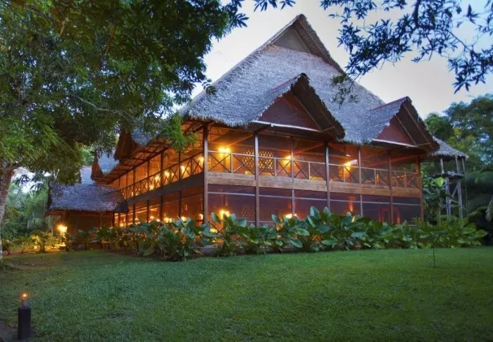 Lodgen har ett unikt läge mellan Tambopata National Park Reserve och Madre de Dios-floden och är byggd på ett 819 hektar stort område, där det tidigare låg en kakaoplantage och gummiodling. Lodgen ligger cirka 8 kilometer uppåt floden, Madre de Dios, från Puerto Maldonado.