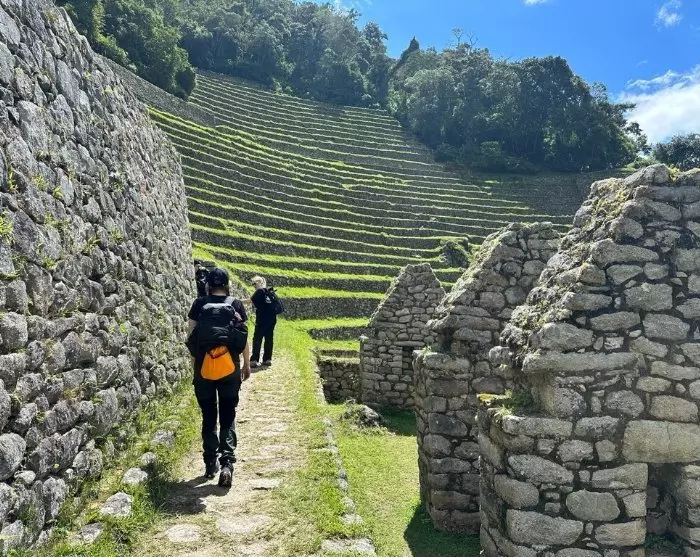 Därefter startar stigningen mot Wiñay Wayna på 2 650 meters höjd som är ett av de största och bäst bevarade komplexen längs inkaleden. Ruinerna ligger på en grön bergssluttning och består av gamla hus, torn och imponerande lantbruksterrasser, som smyger sig upp längs berget. Det storslagna komplexet omges av frodig, mörkgrön molnskog och har en vacker utsikt över bergen och Urubamba-floden nere i dalen.