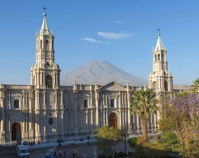 Därefter flyger du till Arequipa, som även kallas ”Den vita byn” på grund av sina vackra, vita byggnader av vulkaniska stenar. Här ser du det berömda kolonialtidsklostret Santa Catalina och njuter av utsikten över de tre omkringliggande vulkanerna: Misti, Chachani och Pichu Pichu.