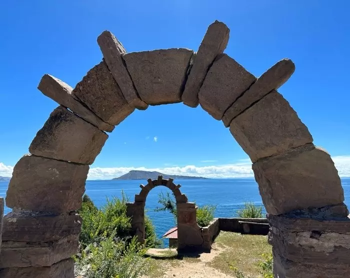 Du äter lunch på den vackert kuperade ön och därefter tar din guide med dig på en promenad upp till öns högsta punkt, där du kan njuta av en imponerande utsikt över Titicacasjön med höga berg i bakgrunden.