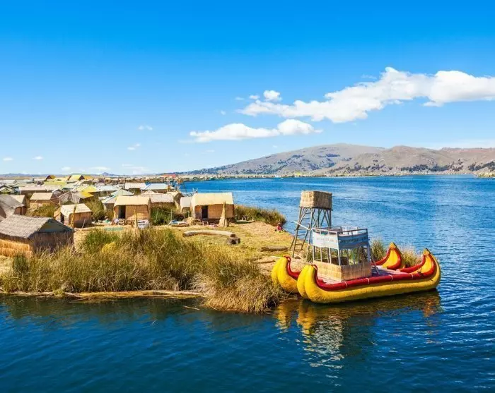 Från stadens hamn seglar du först ut till de flytande vassöarna, Islas Uros, som fortfarande bebos av urosfolket. Detta folk använder sjöns kostnadsfria byggmaterial, nämligen den starka totoravassen, för att bland annat bygger öar, hus och båtar. Även om öarna i dag har kommersialiserats något så är det fortfarande fascinerande att lära sig mer om urosfolkets kultur och gamla traditioner och inte minst att uppleva deras imponerande hantverk.