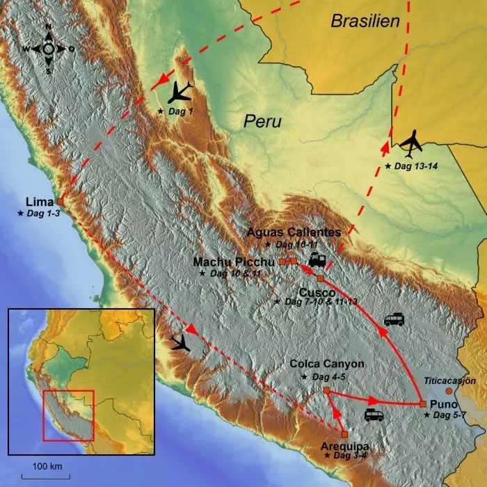 Följ med på en 2-dagars vandring på Inkaleden till Machu Picchu genom Andernas äventyrliga landskap. Du upplever även inkahuvudstaden Cusco samt Lima, Arequipa, Colca Canyon och Titicacasjön.