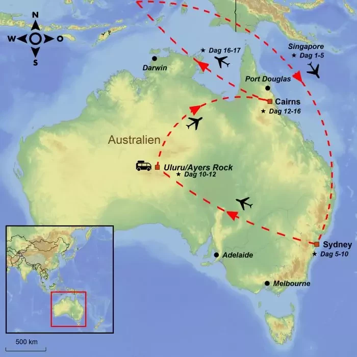 Förläng resan med ett par dagar i den pulserande storstaden Singapore, innan resan på andra sidan jorden går vidare. Se fram emot vackra Sydney, besök vid Uluru i Australiens röda centrum och tropiska Cairns. Möjlighet att förlänga resan med solsemester eller nationalparksupplevelser.