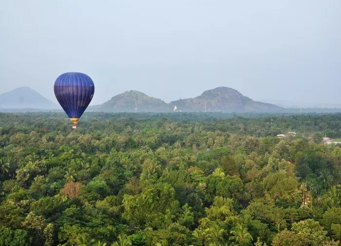 I den ena riktningen kan du se den stora, gyllene Buddhan vid Dambullatemplet och i den andra den imponerande Lejonklippan i Sigiriya. Sedan är det upp till vinden åt vilket håll luftballongen ska flyga. Ofta växlar vindens riktning efter höjden så den erfarna piloten har dock också något att säga om saken.