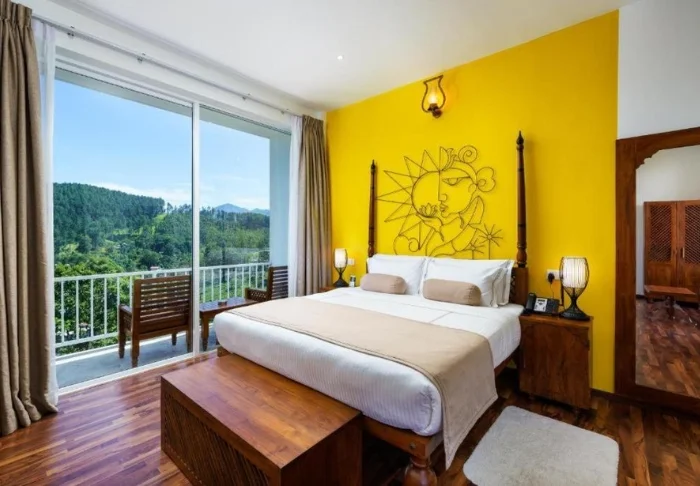 Du bor i ett Standard-rum som är vackert inrett med varma träinslag och stora fönsterpartier som på ett magnifikt sätt ramar in det grönskande landskapet utanför. Inredningen är gemytlig med möbler av naturliga material och en tydlig respekt för omgivningarna. Här har du fri tillgång till wifi, TV, värdeskåp, minibar samt kaffe- och tefaciliteter. Badrummet är praktiskt utrustat med duschhörna och kostnadsfria toalettartiklar. Från din privata balkong har du utsikt över Ellas dramatiska landskap med pittoreska berg och dalar.