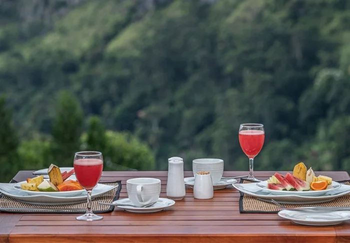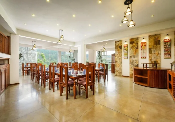 Frukosten serveras i hotellets egen restaurang, där buffén erbjuder både västerländska favoriter och srilankesiska specialiteter. Om du väljer att sitta ute på terrassen får du naturens skönhet som sällskap till måltiden. På kvällen kan du njuta av lugnet med en drink under stjärnorna, medan nattens ljud stillsamt tar vid.