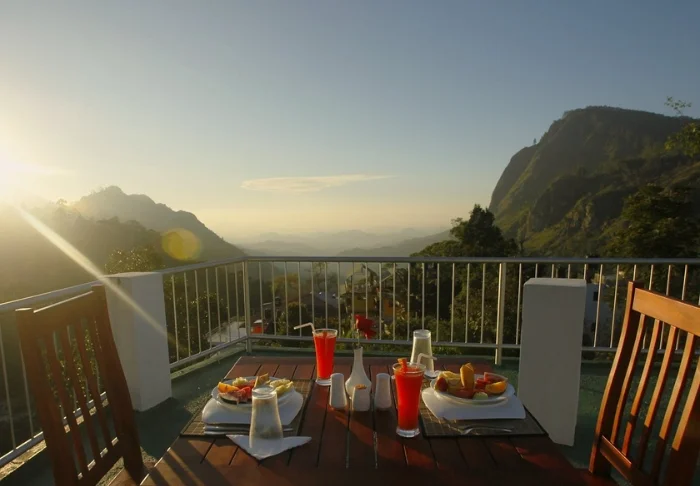 Här väntar kulinariska upplevelser med både lokala och västerländska smaker när hotellets restaurang serverar en utsökt frukost med fantastisk utsikt från terrassen. Under dagen kan du beställa drycker och snacks i hotelloungen eller utomhus, där du också kan avsluta dagen med en drink medan solen färgar kvällshimlen över Ella.