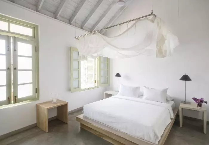 Hotellets 16 rum är fördelade på de tre byggnaderna, där minimalistisk design, rogivande färger och antikviteter från kolonialtiden går hand i hand på finaste vis.
