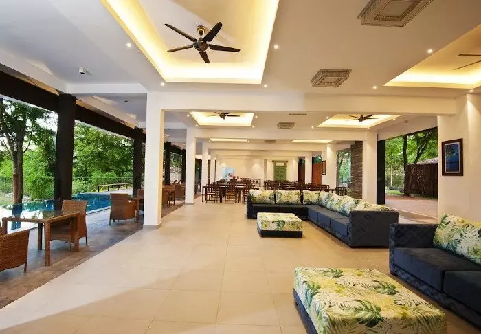 På Grand Udawalawe Safari Resort bor du mitt i naturen, omgiven av gröna trädtoppar och små dammar där orangefärgade karpar glider fram i vattnet. Här råder lugnet sedan länge och bjuder in till avkoppling medan du njuter av den frodiga miljön.