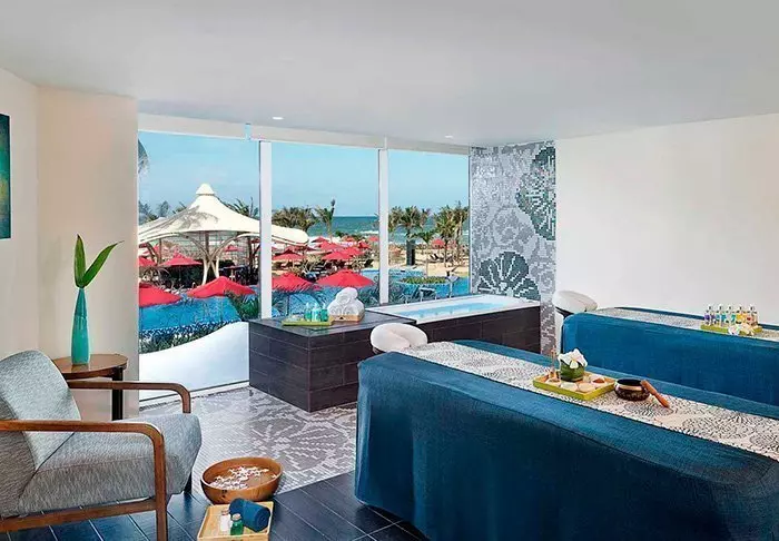 Hotellets poolområde ligger i anslutning till stranden och är en naturlig samlingsplats. Här kan du ta ett dopp, koppla av på en solstol med en svalkande drink eller kliva ut på den mjuka, gyllene sanden som bara är några steg bort. Om du känner dig energisk kan du träna i det välutrustade gymmet eller vara med på en omgång volleyboll, annars kan du unna dig en stund i hotellets moderna spaavdelning. En erfaren behandlare står redo att göra underverk för både kropp och själ.