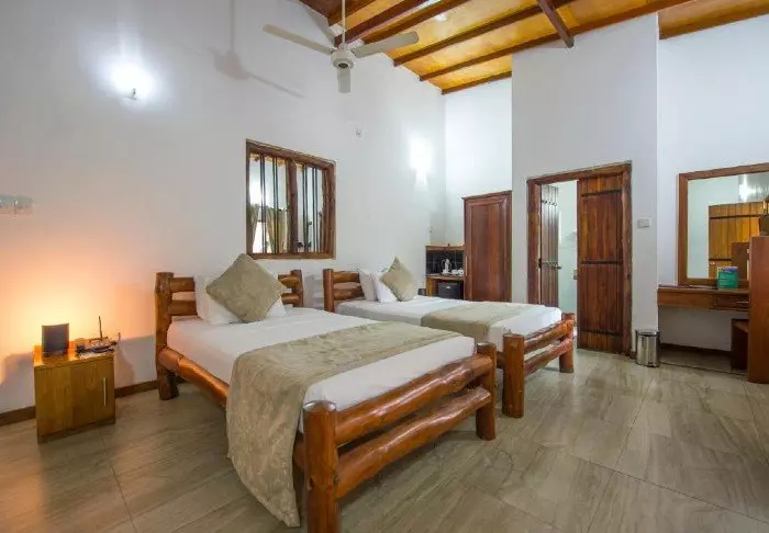 Hotellet har 22 ljusa och rymliga rum, som alla är inredda i en enkel stil med fina mörka trämöbler och lankesiska tyger. Alla rum har wifi, aircondition, tv, minibar, gratis mineralvatten på flaska samt te- och kaffefaciliteter, medan badrummet är utrustat med både dusch, hårtork och gratis toalettartiklar. På morgonen kan du njuta av den vackra soluppgången över Tissa Wewa-sjön och områdets olika fågelarter från din balkong.