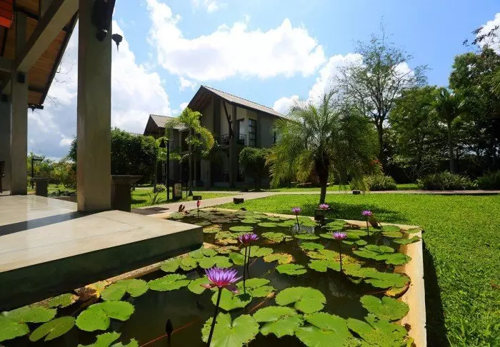 The Lake Forest Hotel har ett fantastiskt vackert läge i Anuradhapuras gröna omgivningar med utsikt över den lugna Tissa Wewa-sjön och stadens höga, vita stupor.