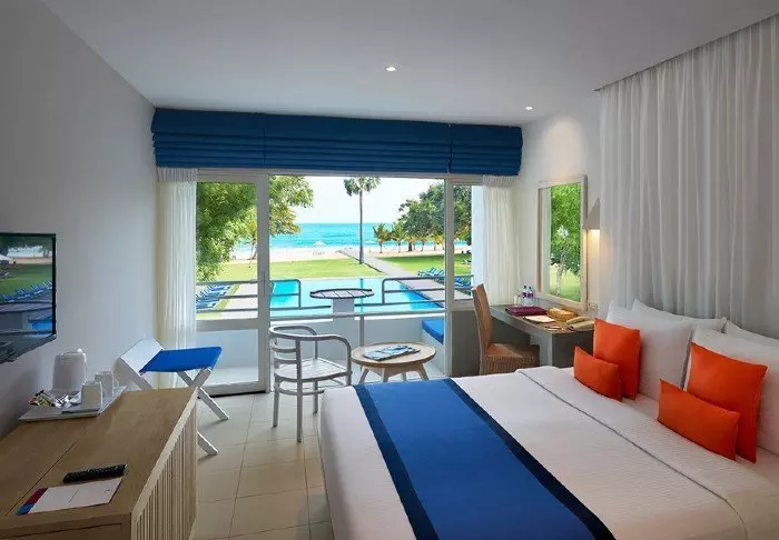 Trinco Blu by Cinnamon har i totalt 79 rum, som alla är ljusa och inbjudande inredda. Varje rum har aircondition, wifi, minibar, tv, te- och kaffefaciliteter samt skrivbord och sittområde. I badrummet hittar du både morgonrock och gratis toalettartiklar. Du har din egen balkong, där du kan sitta och koppla av medan du njuter av utsikten.