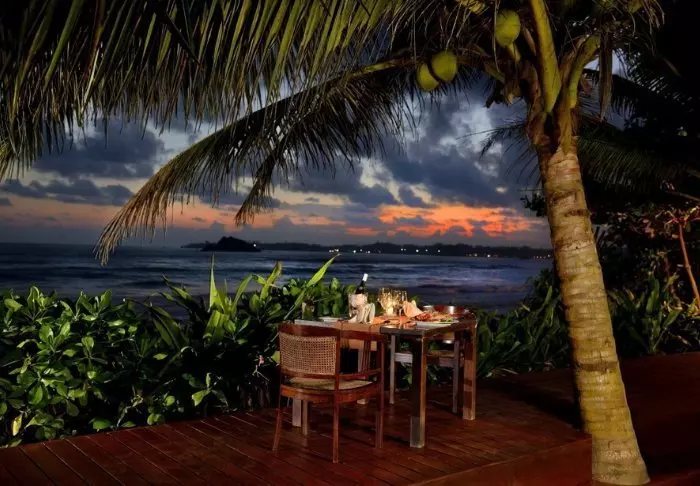 Frukosten på hotellet består normalt av färsk frukt, juice, smoothies, hembakat bröd, ägg och ost, medan lunchrätterna varierar från fräscha sallader, gourmetburgare, smörgåsar, sashimi och tacos. Kvällsmaten är en överdådig affär med specialiteter som grillad hummer, tonfisk och räkor, soppor, lammtagine, mezze, medelhavsinspirerade specialiteter och naturligtvis traditionella lankesiska ris och curry-rätter.