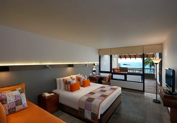Du bor som standard i ett rymligt Superior-rum med rustik inredning, där mörka trämöbler och färgstarka textilier skapar en varm och lokal känsla. Från din egen balkong har du utsikt mot trädgården och havet, där palmerna vajar i vinden och vågornas brus ger en idyllisk bakgrund till morgonkaffet eller en stunds avkoppling med en bok. Alla rum har aircondition, wifi, takfläkt, värdeskåp, minibar, telefon, TV, te- och kaffefaciliteter samt badrum med dusch, badrock, tofflor och toalettartiklar.